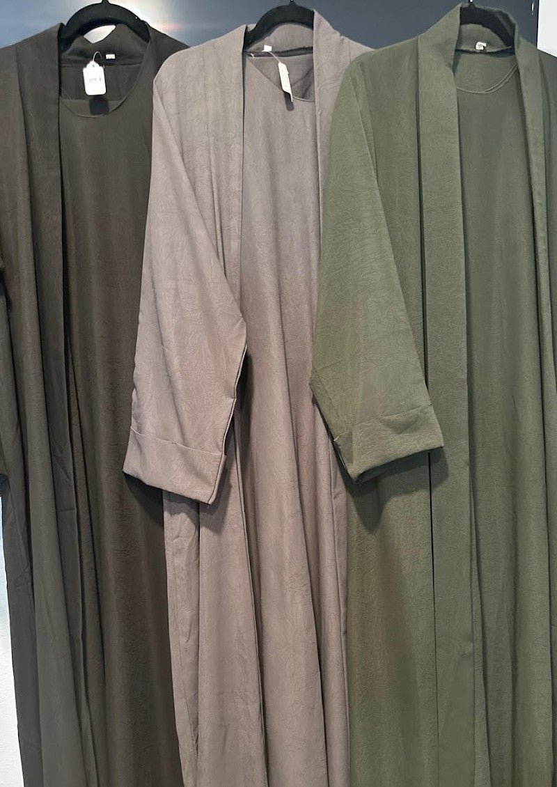 Elevate your wardrobe with the Linen 3-piece abaya with a matching hijab, designed for effortless sophistication and comfort. Made from breathable linen fabric, this ensemble offers a lightweight, airy feel ideal for all-day wear. Its clean lines and elegant silhouette provide a refined look that seamlessly blends tradition with contemporary style. Perfect for those who appreciate subtle luxury and timeless design.