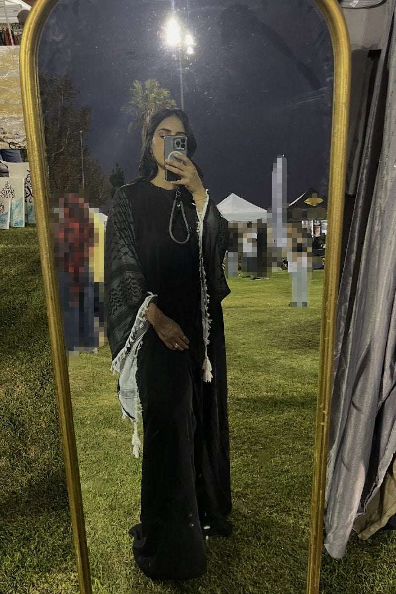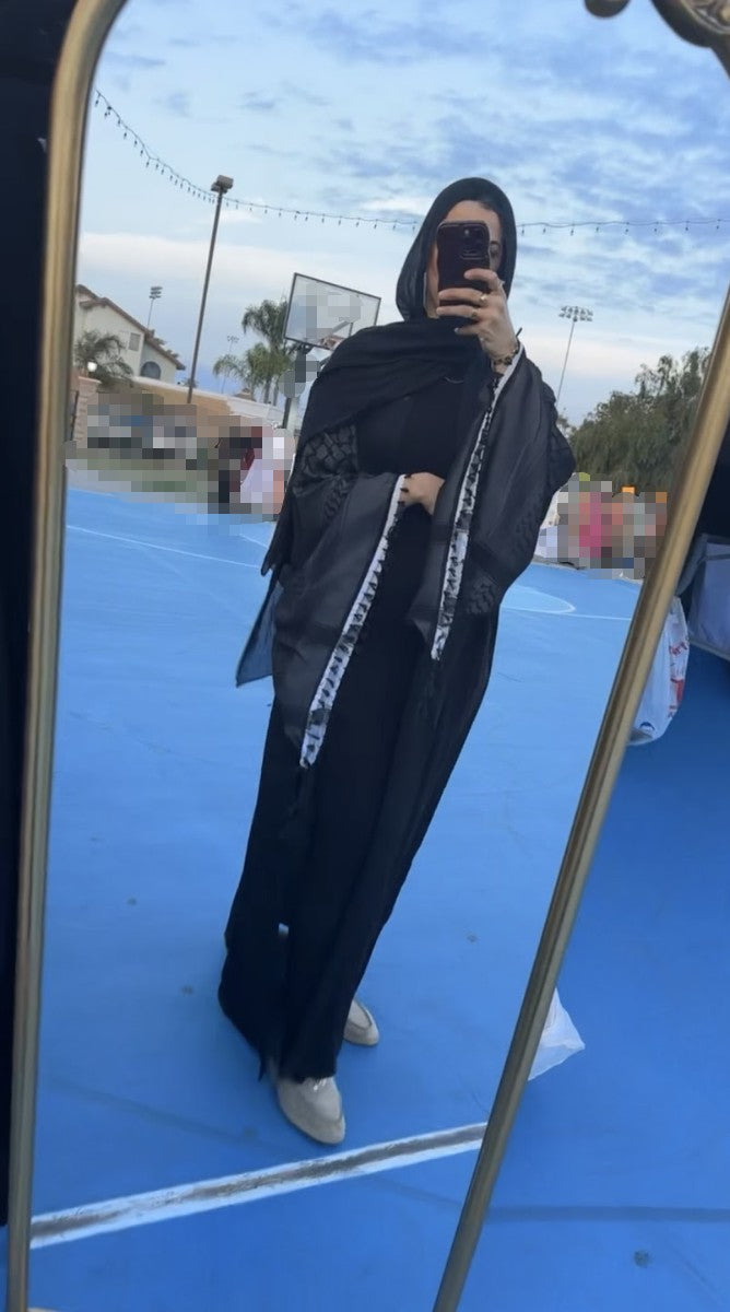 The Kufiya Abaya offers a refined and elegant silhouette, crafted to complement modest fashion with subtle embellishments that highlight its sophisticated appeal. Designed for both comfort and style, this abaya provides a graceful drape suitable for various occasions while maintaining a polished, timeless look. Perfect for those who appreciate understated luxury in their wardrobe.