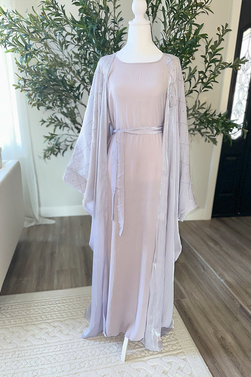 Elevate your wardrobe with the Medina, an elegant two-piece abaya designed to blend timeless modesty with refined sophistication. Crafted with graceful lines and premium fabric, this set ensures comfort while exuding effortless style. Perfect for special occasions or daily elegance, the Medina offers a polished and poised look that enhances your natural confidence.